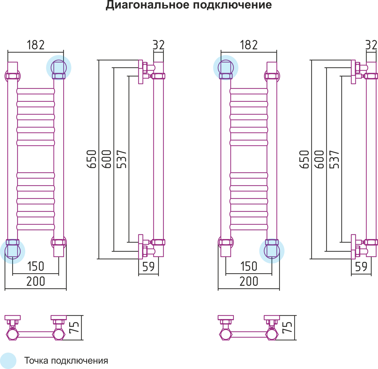 Диагональное подключение, см