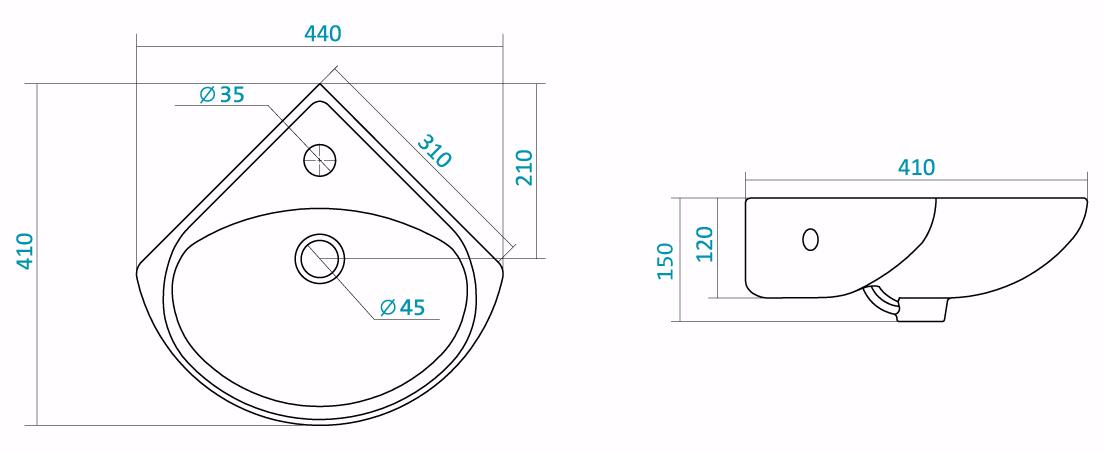 —Раковина угловая Santek ИРИС 1.WH11.0.514 36 см.
