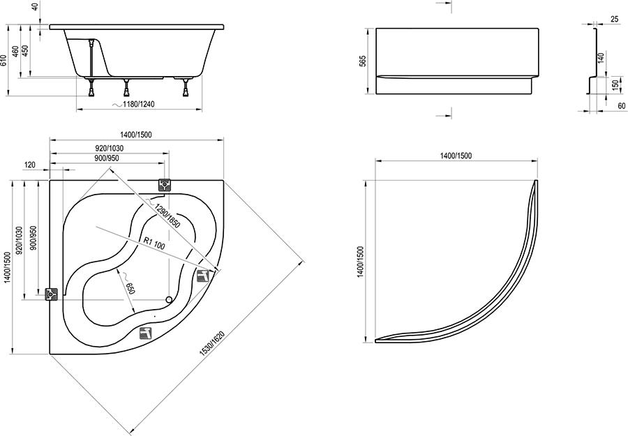 —Ванна акриловая угл. Ravak GENTIANA CF01000000 140*140*61 см.